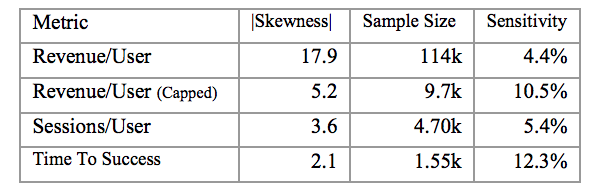 통계의 매력은 작지만 의미있는 표본을 통해 전체 집단의 결과를 추정하는 것이다. 그로스 해킹 및 계량적인 마케팅 기법은 이런 의미있는 표본이 있을 때 제대로 힘을 발휘할 수 있다. 만약 사용자 수가 많지 않다면 실험을 더 오래 돌리거나, 제품에 더 큰 변화를 주는 이상적이지 못한 선택을 해야 할 것이다 (= 늦은 의사결정 또는/혹은 더 많은 위험 수반). 아니면 차라리 마케팅과 제품 개발의 본질로 돌아가서 ‘고객이 무엇을 원하는지’를 발품 팔아 그들에게 직접 피드백을 듣고 그것을 바탕으로 의사결정을 하는것이 낫다 (= do things that don’t scale). 다음 도표는 논문에서 제시한 적절한 표본 집단의 크기. 역시 유동성이 큰 매출 지표는 꽤 많은 사용자들을 표본집단으로 필요함을 알 수 있다.